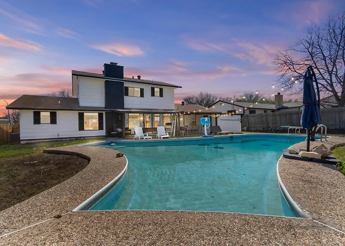 **Poolside Retreat In Central Sa San Antonio** is a vibrant getaway nestled in the heart of West San Antonio, where families and explorers alike can immerse themselves in a plethora of green spaces and outdoor activities. This tranquil haven is perfect for those seeking both relaxation and excitement, with the landmark Alamo just a short distance away, allowing guests to delve into the rich history of the Texan Revolution.